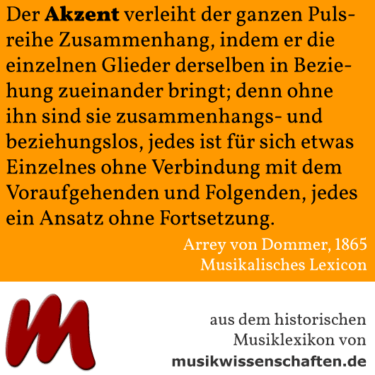 Accent [Akzent] ist ein gewissen Gliedern einer Tonreihe beigelegter Nachdruck, vermöge dessen sie entweder