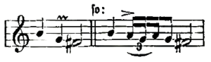 Früher wendete man auch den doppelten oder längeren Pralltriller an. Sein Zeichen [siehe nachfolgendes Notenbeispiel], seine Ausführung ist ein mehrmaliger Wechsel der beiden Töne: